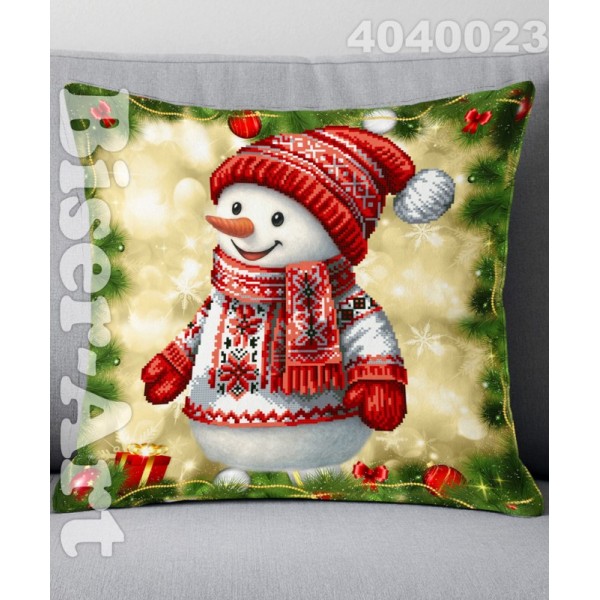 4040023 Сніговик у вишиванці новорічний (наволочка+подушка) для вишивки