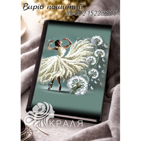 Обкладинка для блокнота під вишивку бісером або нитками. Матеріал обкладинки - чорна екошкіра, зона вишивки - габардин з нанесеним малюнком, всередині підкладка. В комплекті йде блокнот-щоденник діловий, недатований, на 320 сторінок, формат А5,в твердій обкладинці. Виріб пошитий