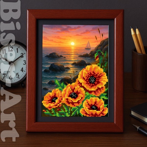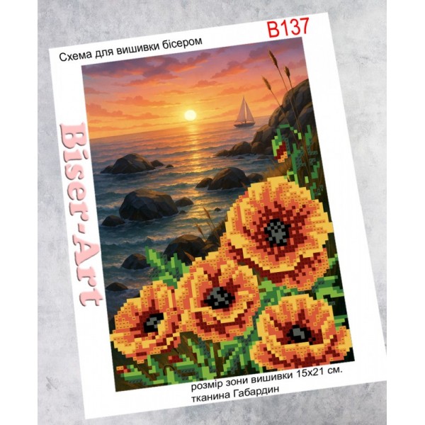Схема для вишивки бісером або вишивки хрестиком. Розміром 15х21 см. Тканина — габардин підклеїний флізеліном.Малюнок чіткий та насичений.