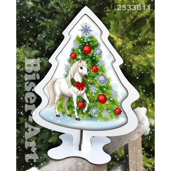Набір для створення декору “Новорічна ялинка”. Складається із схеми під вишивку бісером або хрестиком, основи, контуру та підставки. Розмір готового виробу ~ 25х33 см