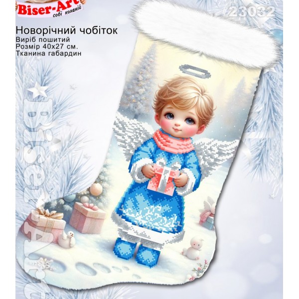 Пошитий подарунковий чобіток. Тканина - габардин. Оздоблений штучним хутром. Розмір 40х27 см