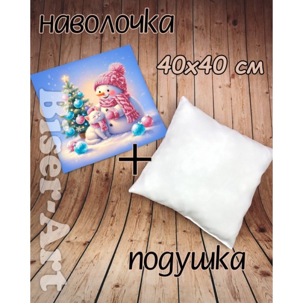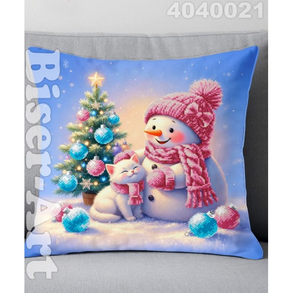 4040021 Сніговик з котиком новорічний (наволочка+подушка) для вишивки