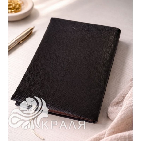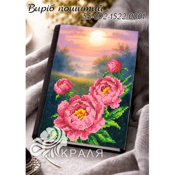 Обкладинка для блокнота під вишивку бісером або нитками. Матеріал обкладинки - чорна екошкіра, зона вишивки - габардин з нанесеним малюнком, всередині підкладка. В комплекті йде блокнот-щоденник діловий, недатований, на 320 сторінок, формат А5,в твердій обкладинці. Виріб пошитий