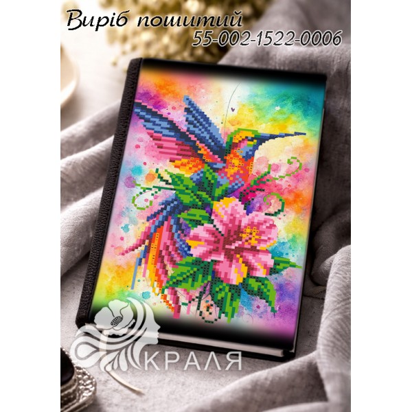 Обкладинка для блокнота під вишивку бісером або нитками. Матеріал обкладинки - чорна екошкіра, зона вишивки - габардин з нанесеним малюнком, всередині підкладка. В комплекті йде блокнот-щоденник діловий, недатований, на 320 сторінок, формат А5,в твердій обкладинці. Виріб пошитий