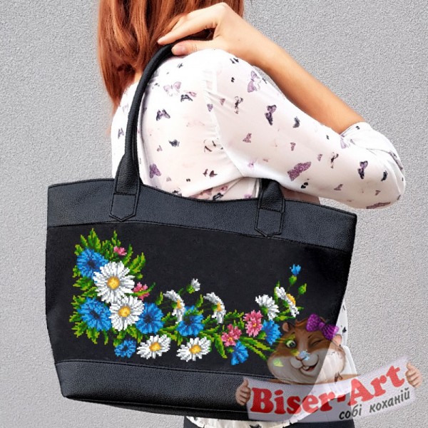 Сумка з якісної німецької екошкіри, із вставкою під вишивку бісером або нитками. Розмір 30х40 см.